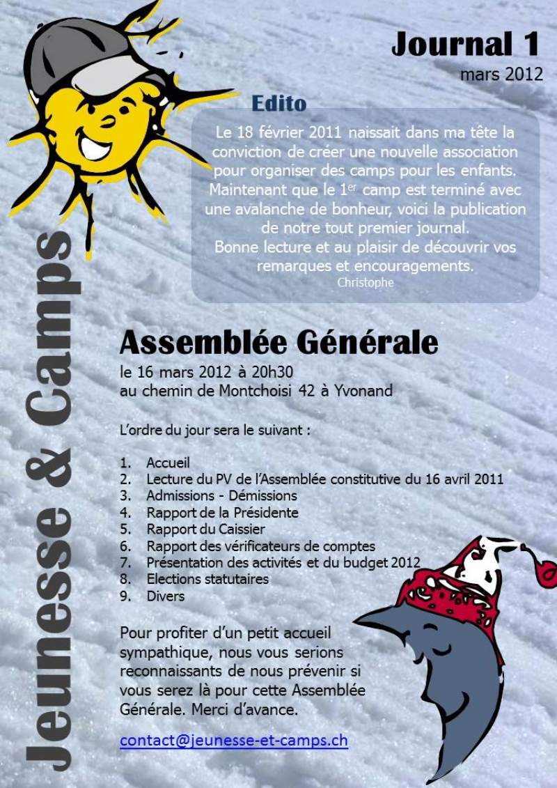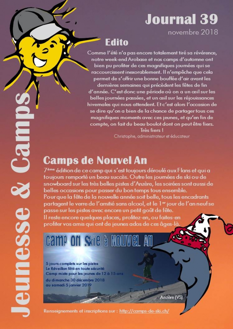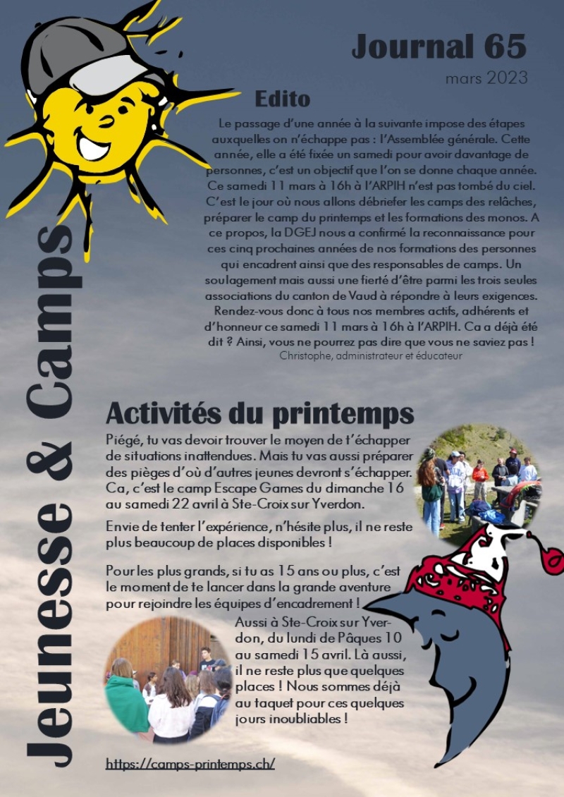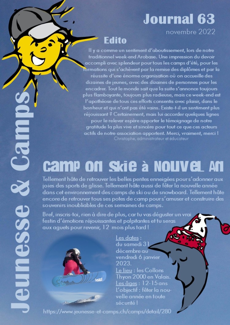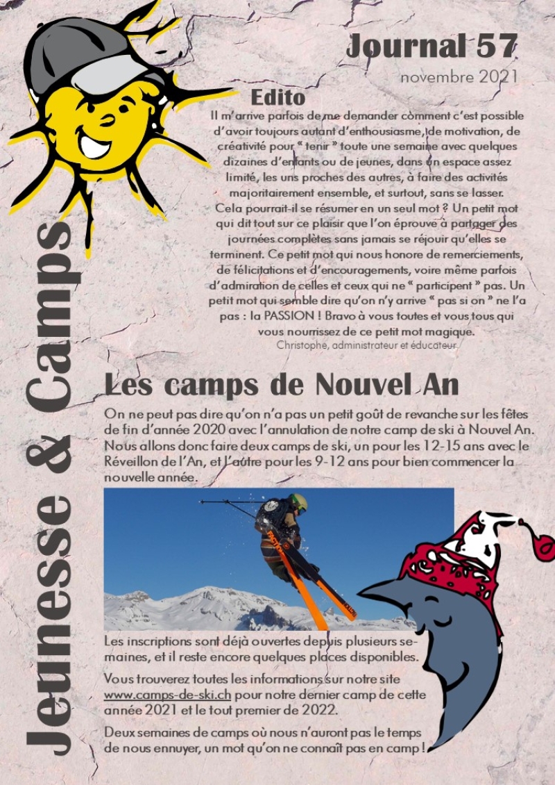 1er journal de Jeunesse et Camps: convocation à l'Assemblée Générale, le camp de ski et de snowboard à Saas Grund et l'annonce des camps d'été
