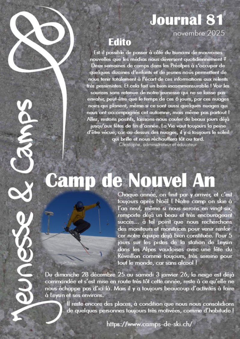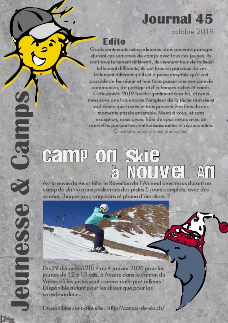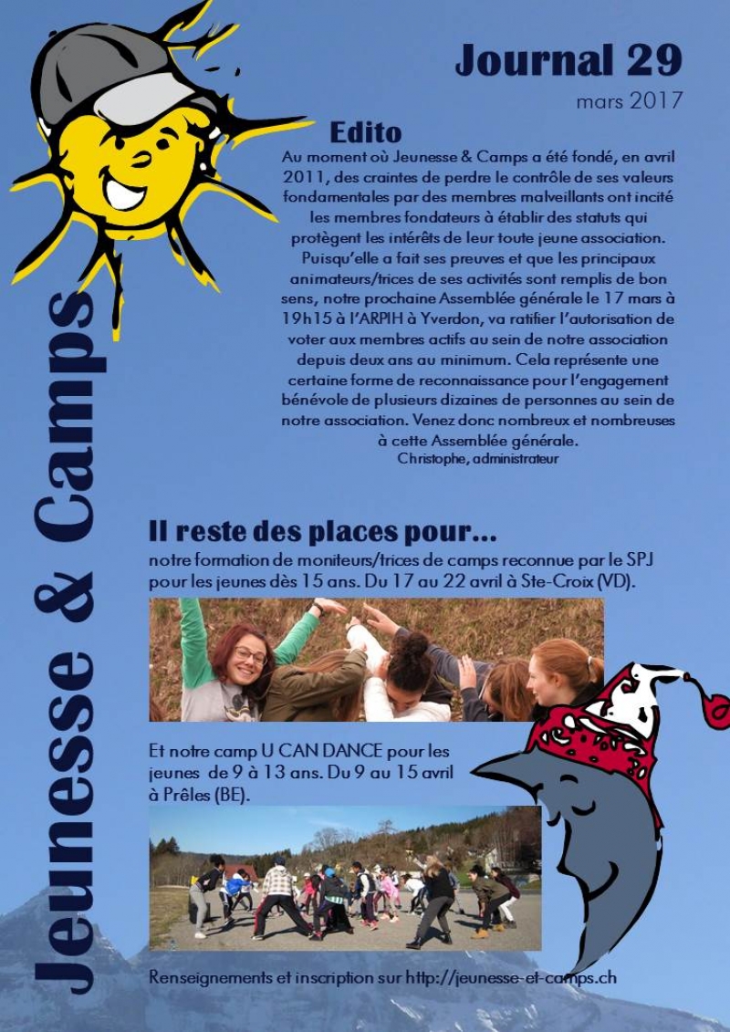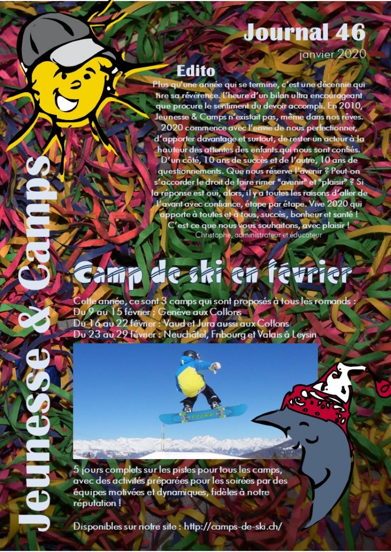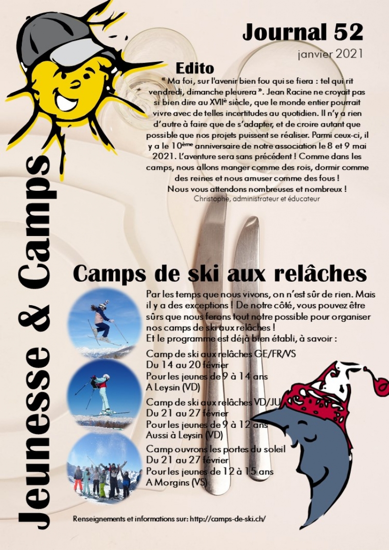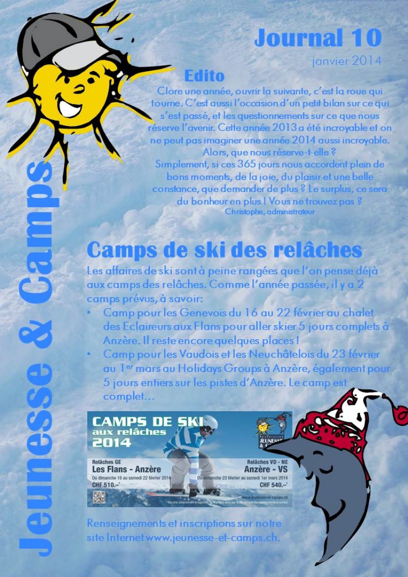 1er journal de Jeunesse et Camps: convocation à l'Assemblée Générale, le camp de ski et de snowboard à Saas Grund et l'annonce des camps d'été