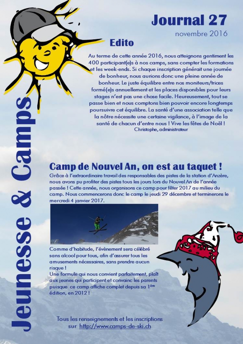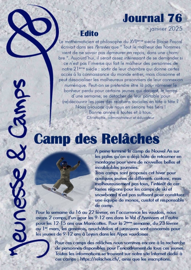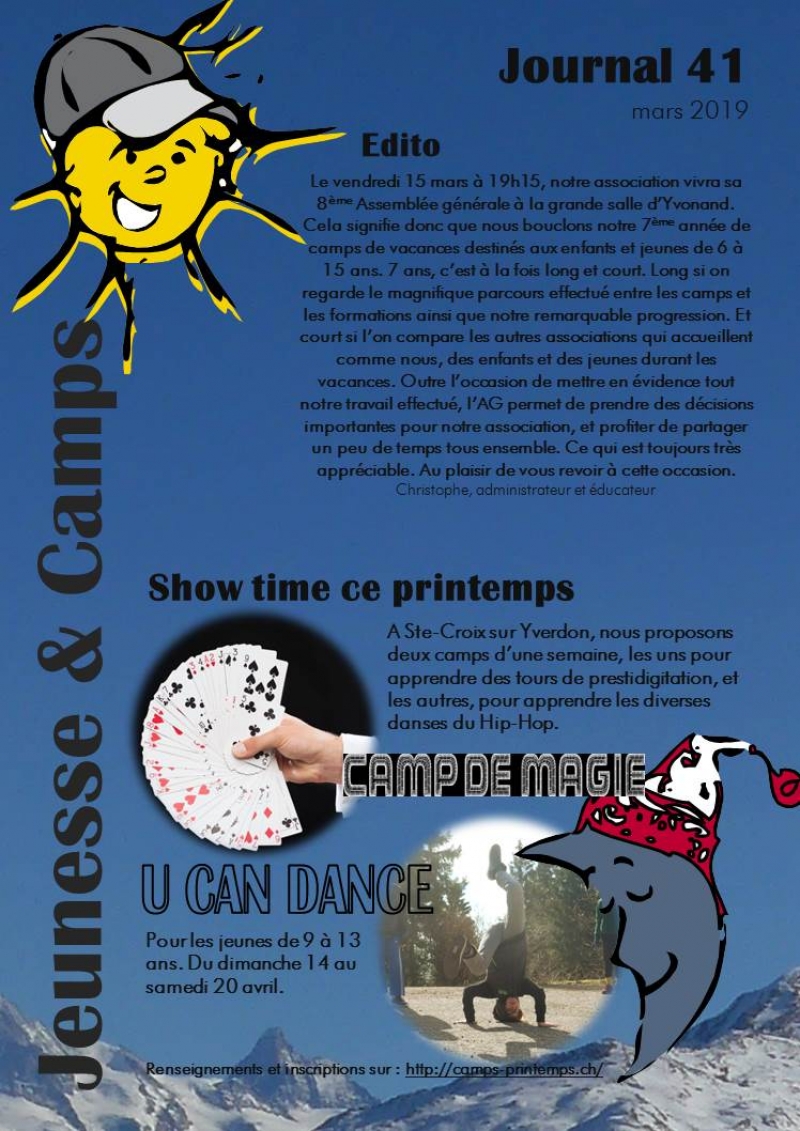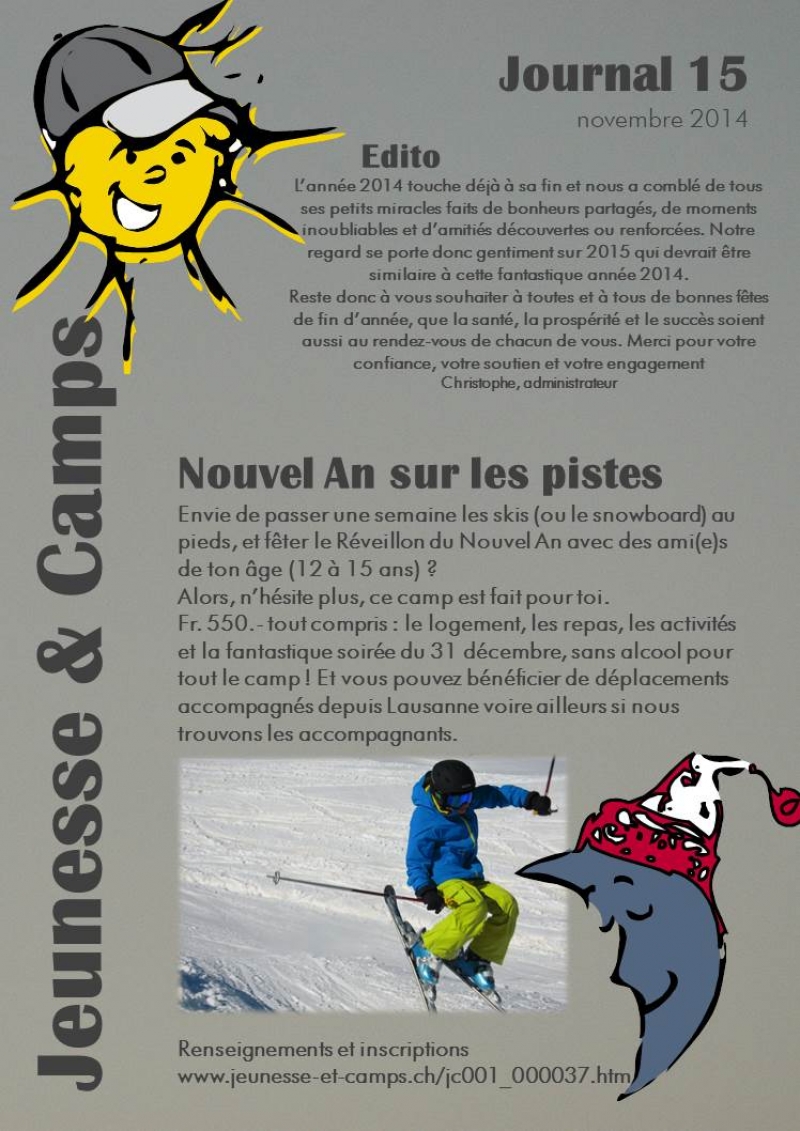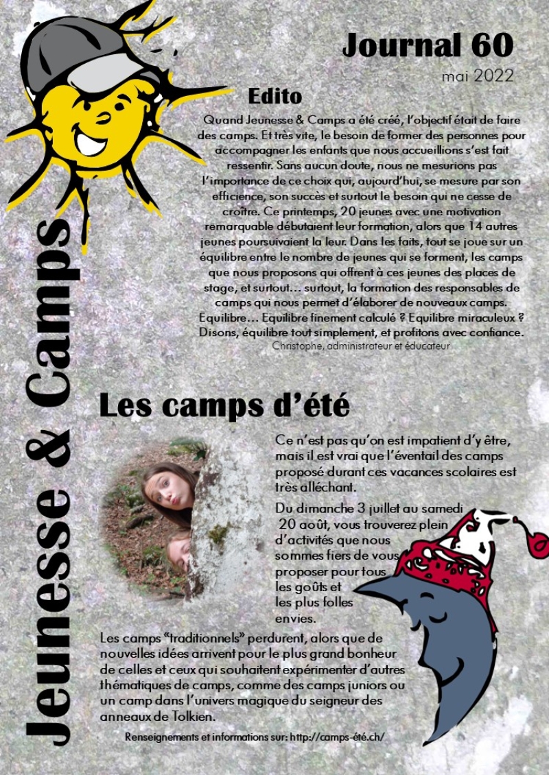 1er journal de Jeunesse et Camps: convocation à l'Assemblée Générale, le camp de ski et de snowboard à Saas Grund et l'annonce des camps d'été
