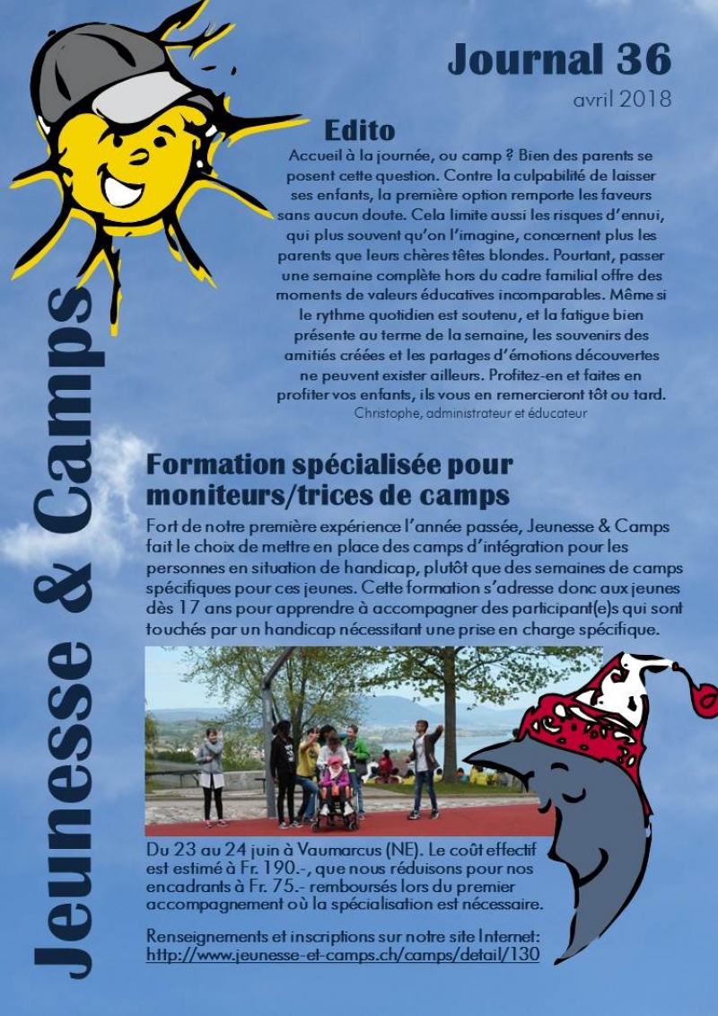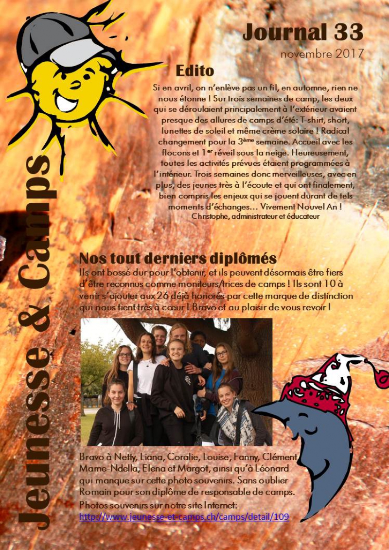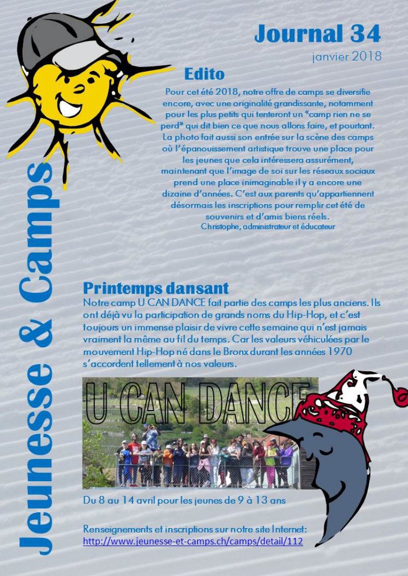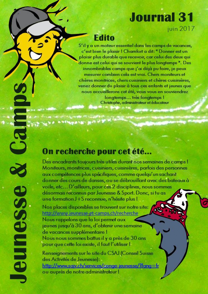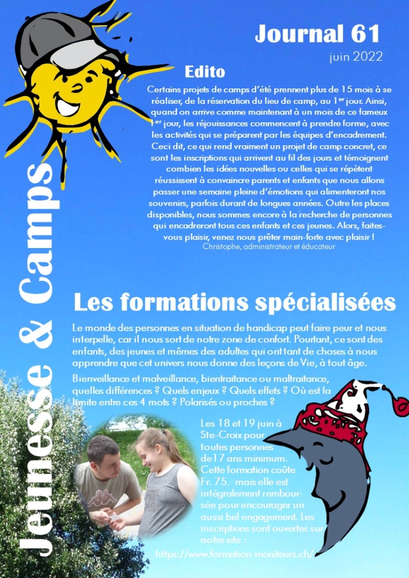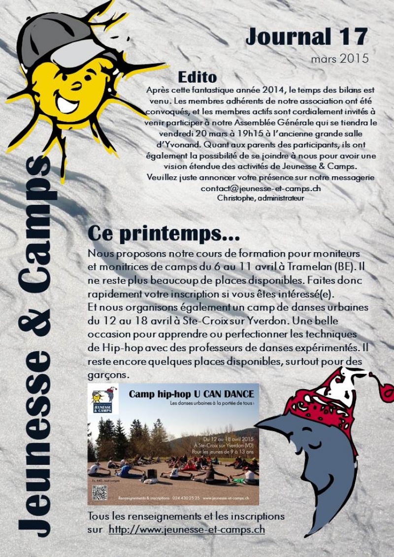 1er journal de Jeunesse et Camps: convocation à l'Assemblée Générale, le camp de ski et de snowboard à Saas Grund et l'annonce des camps d'été