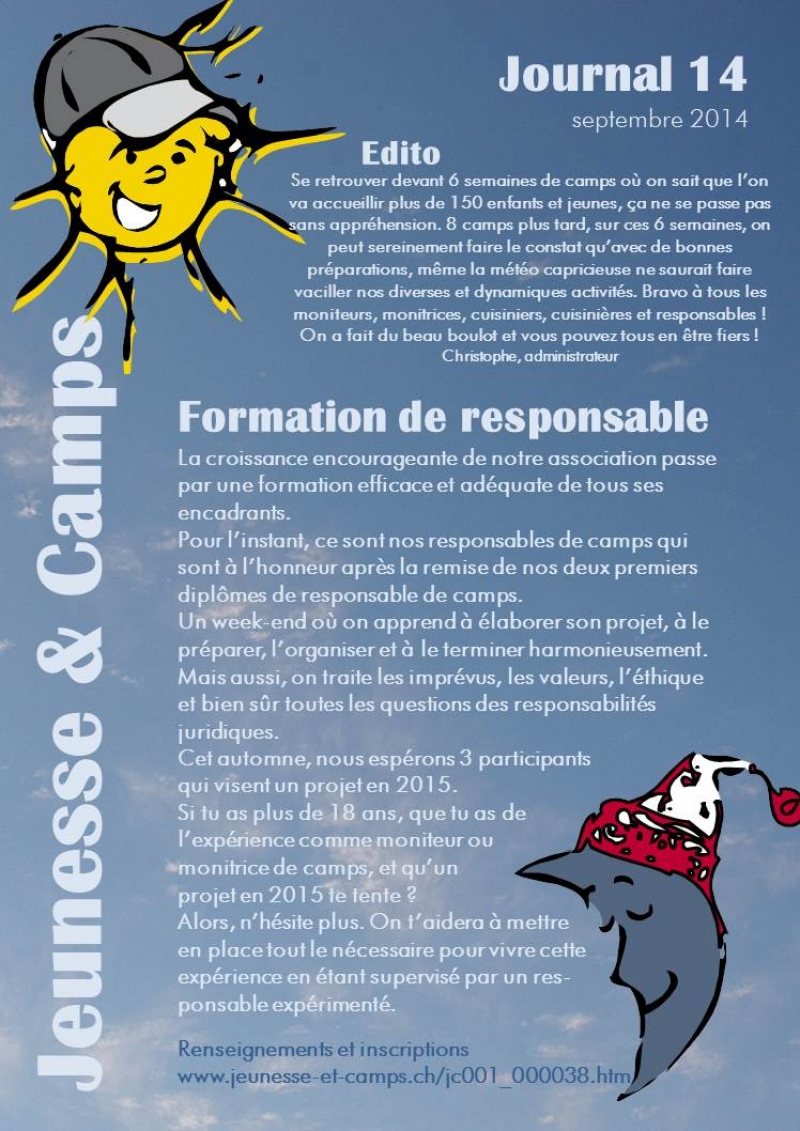 Camps d'été 2014, formation de responsables de camps et camps d'automne