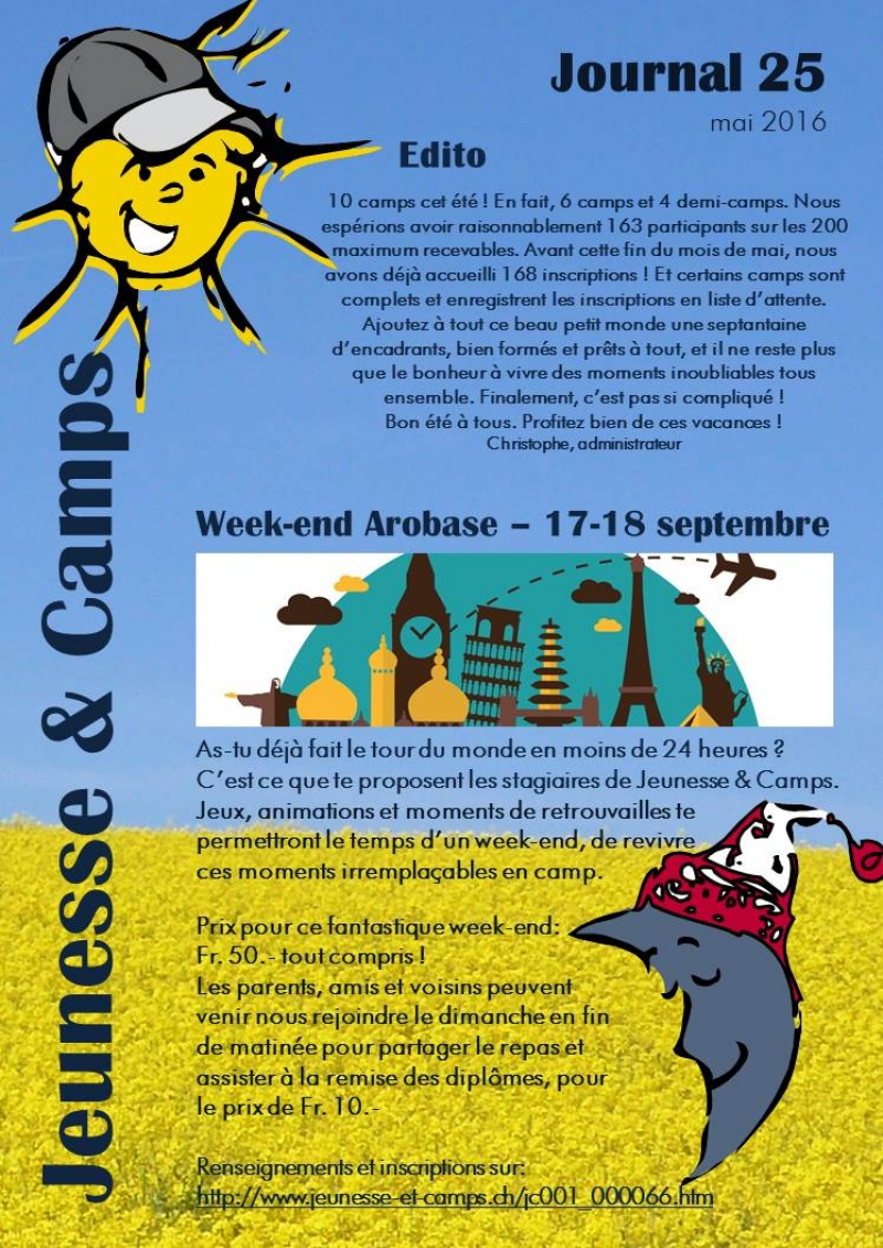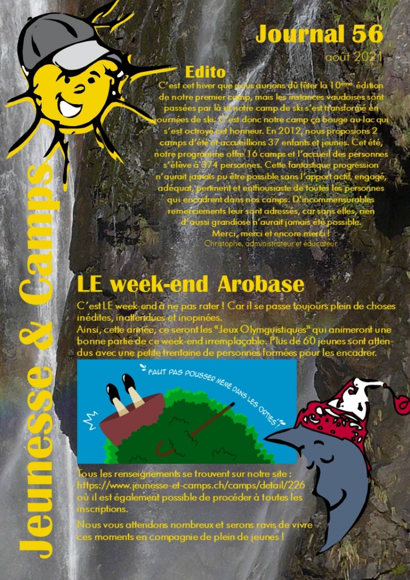 Revue des camps d'été, annonce du week-end Arobase et des camps d'automne