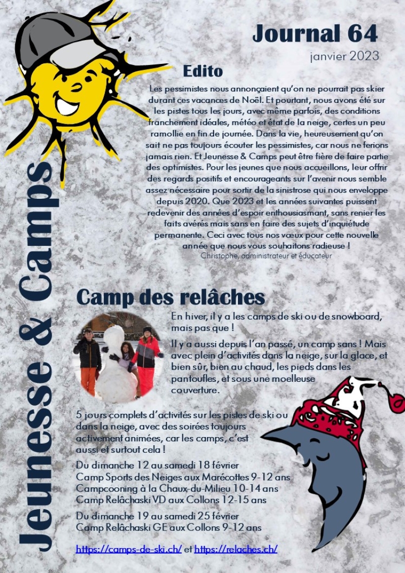Le camp de Nouvel An malheureusement annulé et l'annonce de nos camps de ski des relâches