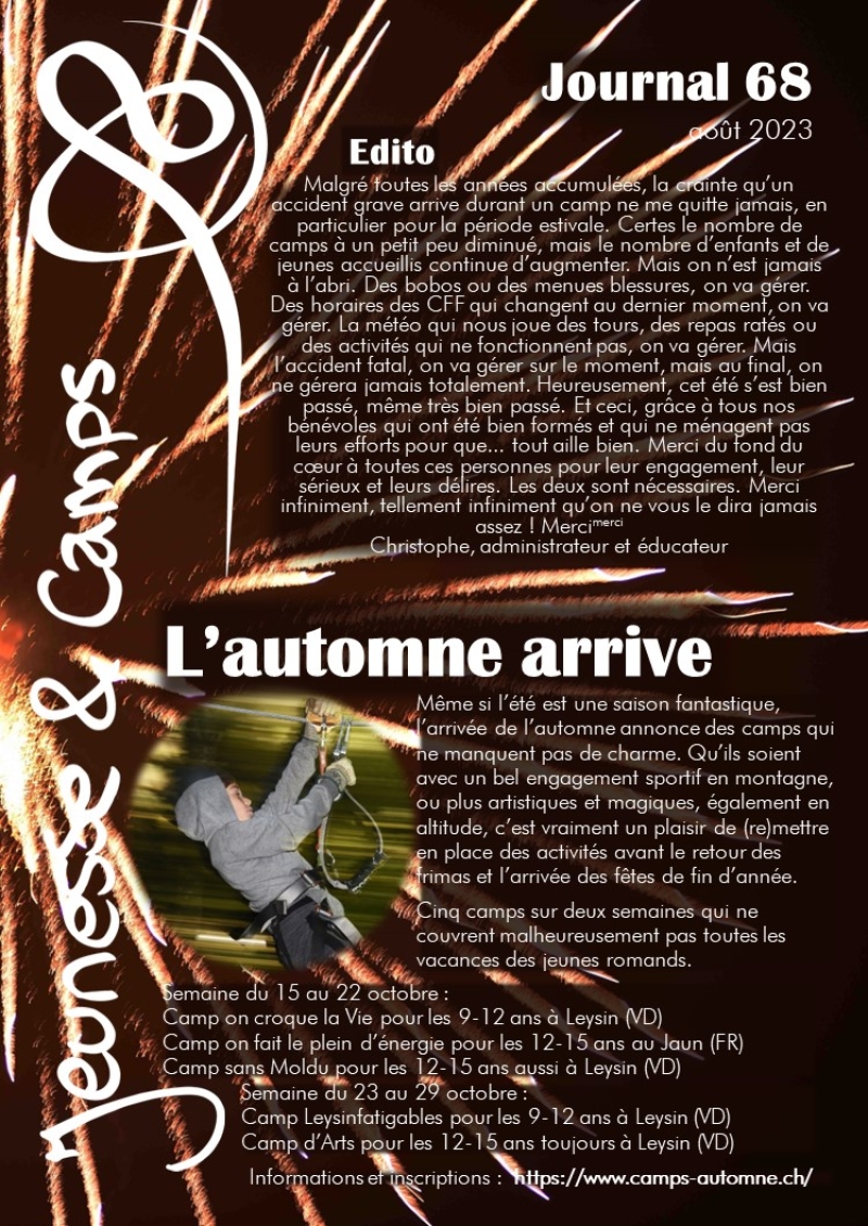 Camps d'automne et annonce des activités de fin d'année avec le week-end Esperluette et les camps de Nouvel An